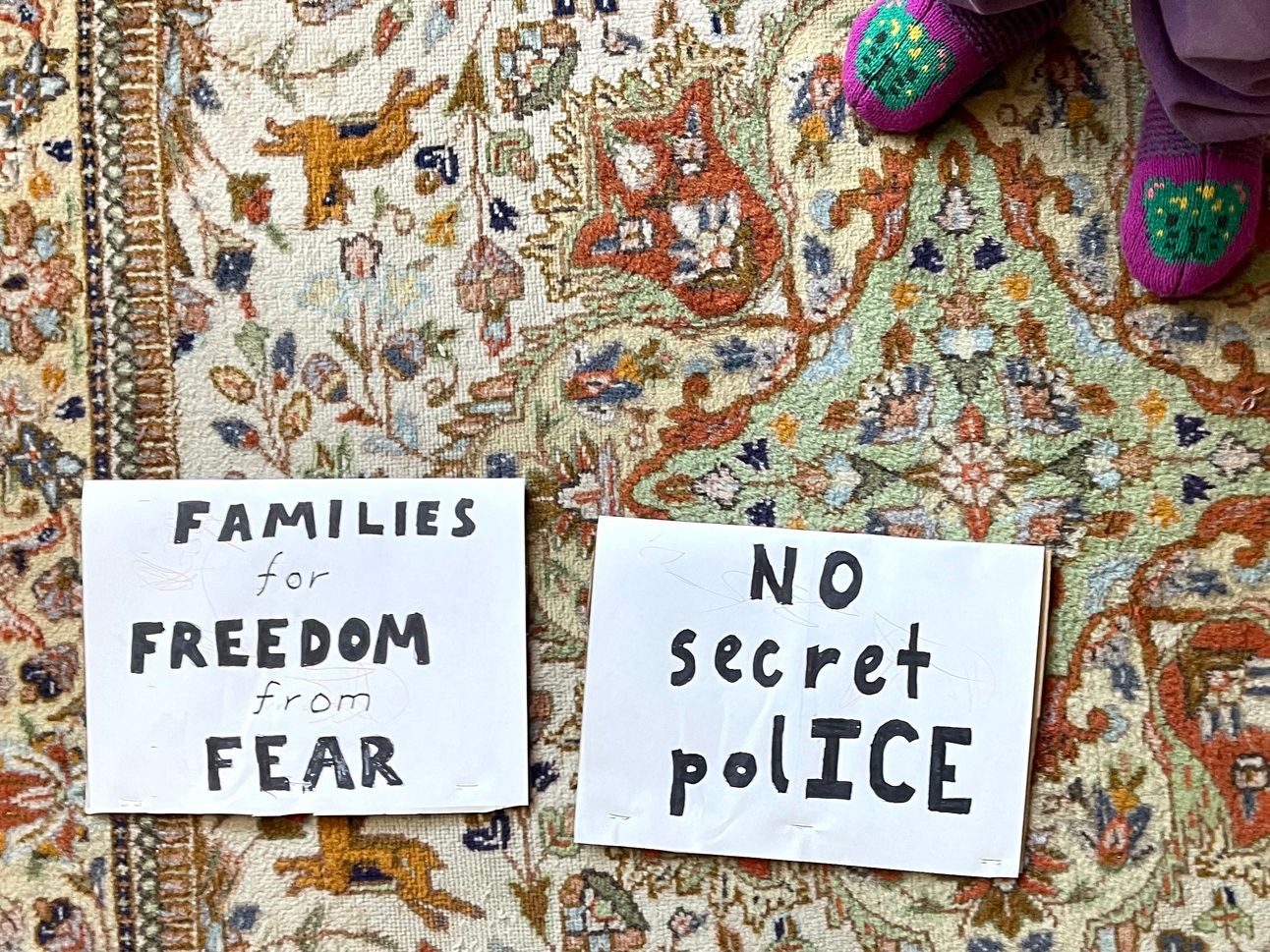 We went to one of the protests yesterday, and it was such a good reminder that Taking action is good for the spirit. Alone, atomized, watching the news and unable to act, I can feel so demoralized. Out there on the streets, two-year-old strapped to my back, partner holding a sign that said “Families for Freedom from Fear,” surrounded by people who love this land just as much as we do, I felt the possibility of a path forward. It involves joining hands. As I overheard someone say, “This is just the beginning.”