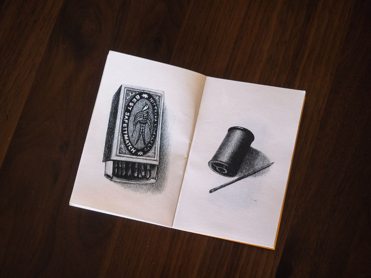Books have contexts, and those contexts shape our response to them, so I think I should share how I came to own these two little zines. I found them each in San Francisco, in the wonderful zine shop / curated ephemera joint Needles & Pens. When we visit friends in the Bay—a too-rare occurrence these busy days!—I always love to go into this shop on Valencia Street. They always have the most wonderful selection of zines and random art books and also fancy candles and socks and earrings, etc. It’s always a trick and a pleasure to figure out what zine(s) you’re going to take to the register. Are you cool enough to own them? Or, perhaps, could you become someone cool enough to own them? (You can.)
