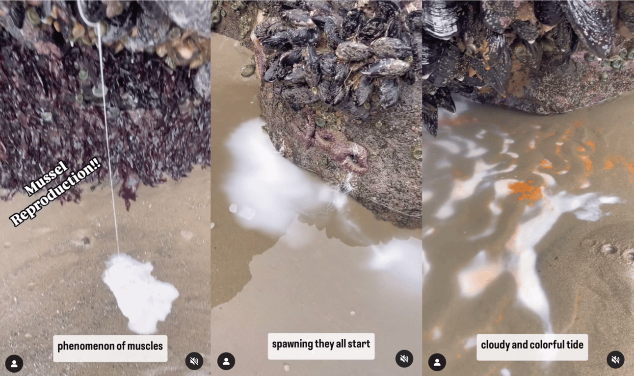 In high school some of my friends became obsessed with banana slug sex (look up at your own peril). I never really got into it, though. But then I found out about mussel spawning, and now I’m obsessed. It makes me want to take up a daily tidepooling practice, just so I could be there on the wild day when this happens.