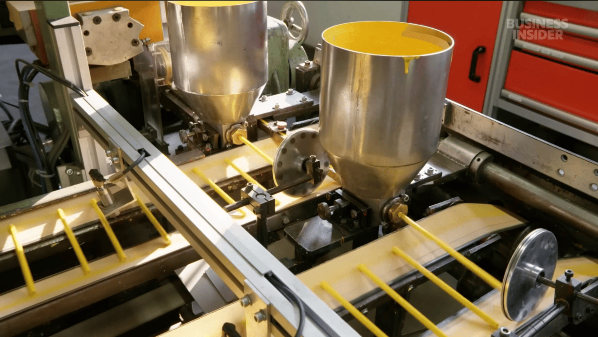 Business Insider’s video “Why Professional Colored Pencils Cost 14 Times More Than Crayola” has tons of hypnotic footage from within the Faber-Castell factory in Stein, Germany. It was of particular interest to me because I recently bought an on-sale set of 24 colored pencils of the Prismacolor Premier line, and I found myself rather in awe of how much more pleasant and responsive they are than the Crayola colored pencils we have. Artisan products: sometimes worth the markup! (I also recently enjoyed this WSJ video on Blackwing pencils: Why This Cult ‘$40 Pencil’ Almost Went Extinct.”)