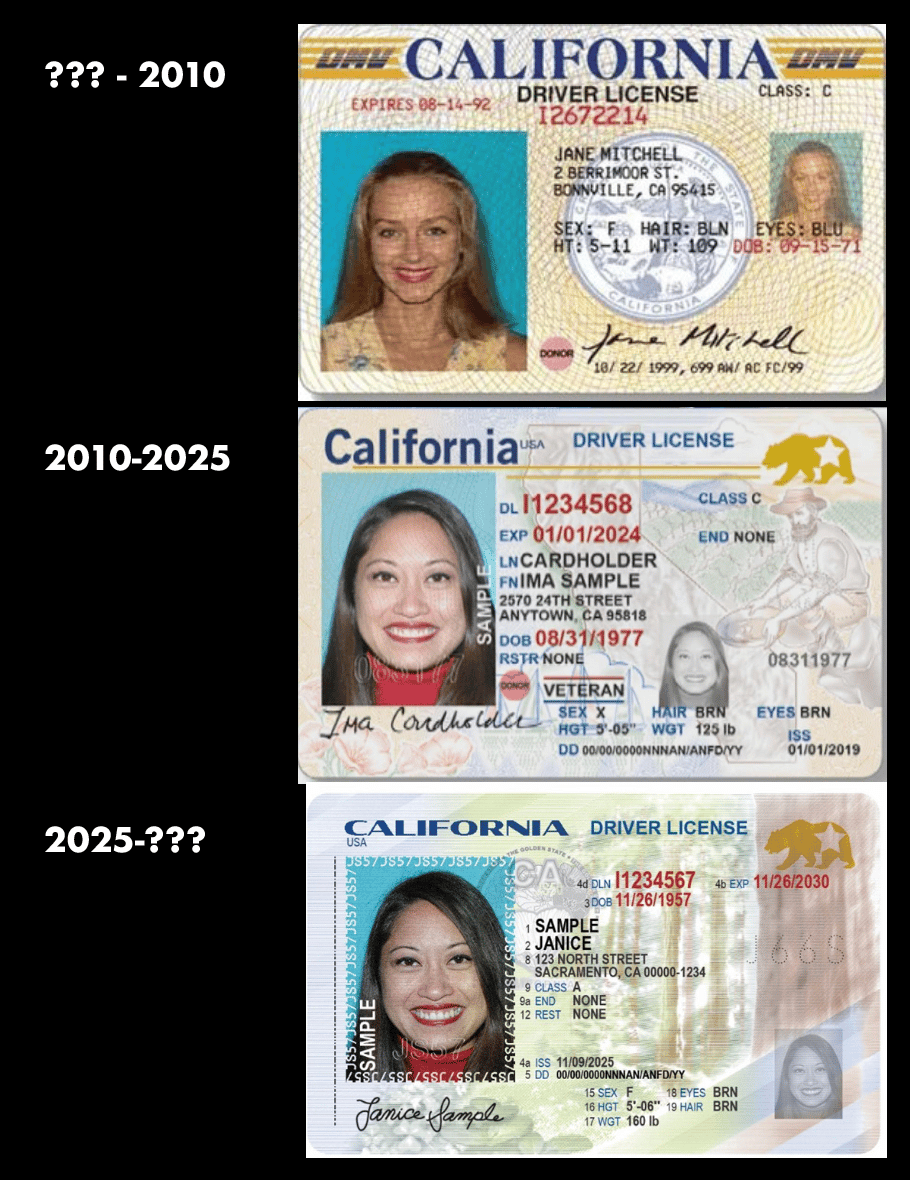 I got a new California Driver’s License and was surprised to find that they changed the typography again. The DMV’s press release focuses on the security features but doesn’t mention what the new font for “CALIFORNIA” is, which is really the big change for me. I poked around but couldn’t identify it. Does anyone know what this chrome-age slab serif is?