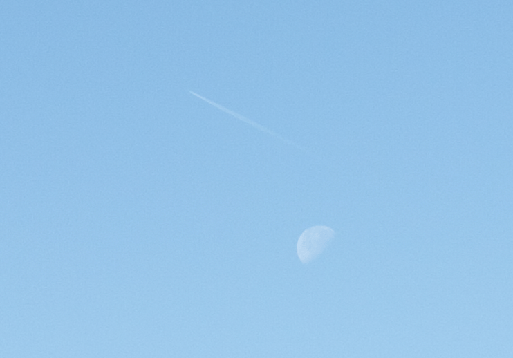 The other day I saw a contrail by the moon and rushed to grab my phone camera. It looked just like the cover of a novel from the ’60s about settling the stars.
