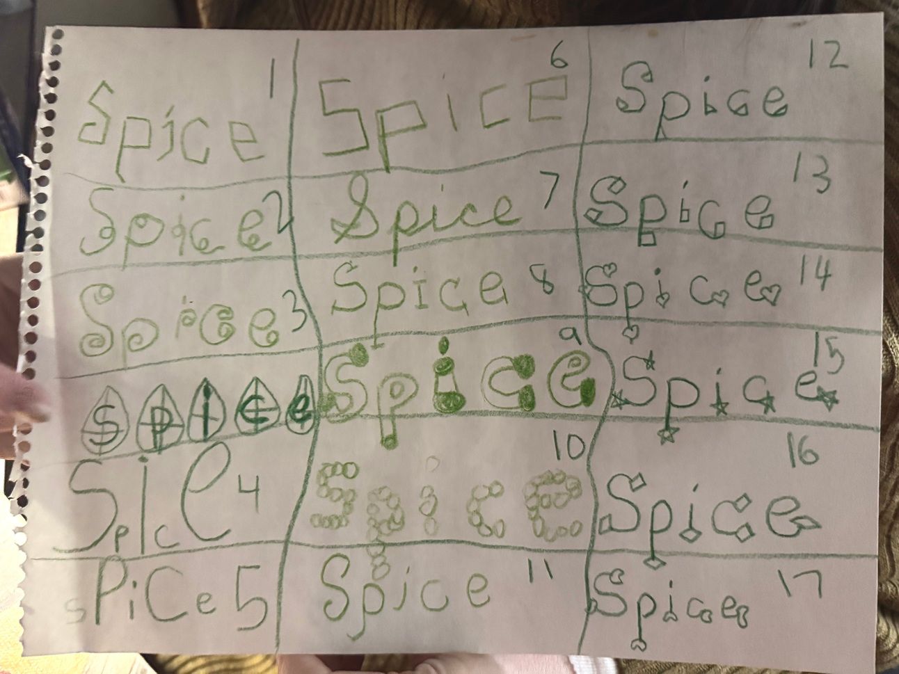 My partner and her sister spent much of our trip to Chicago processing many, many boxes of childhood and family ephemera. Among the treasures found was this type specimen created many moons ago by my sister-in-law Julia. Spice!