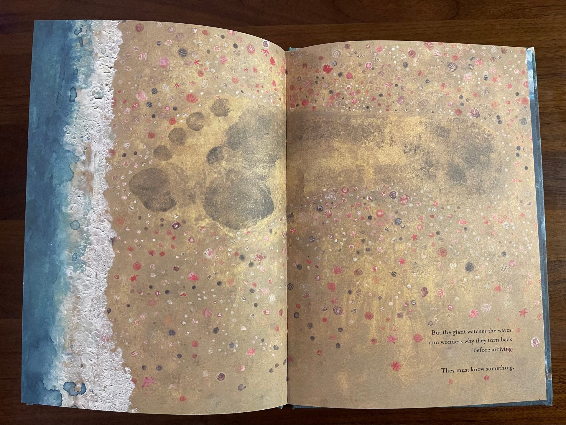 A spare, moving picture book about a giant who never fully appears. The artist used their own footprint in this composition; the text also has an intriguing metatextuality. Despite or because of this high literary quality, the kid is riveted.