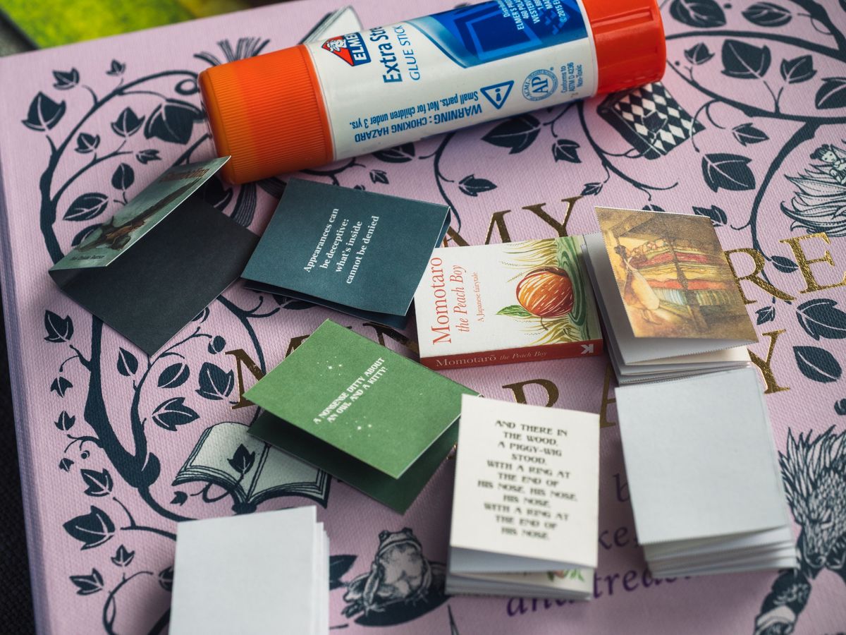The 8.5×11” sheets of paper kept turning into tiny but still real and readable books, and we found ourselves enchanted.