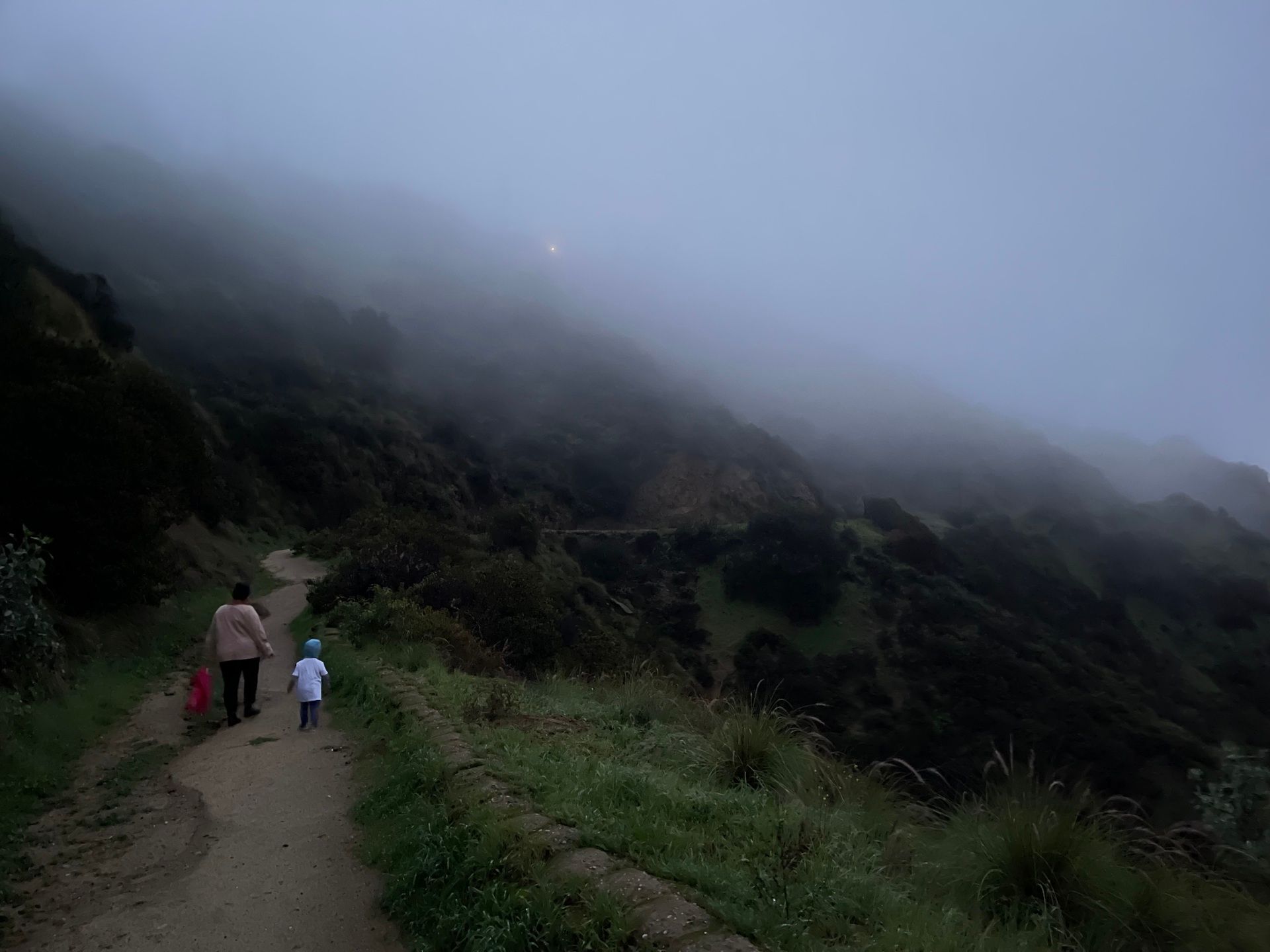 When it gets real gloomy and wet, why not head for a nearby hill, right at nightfall, and indulge in some fog-bathing?