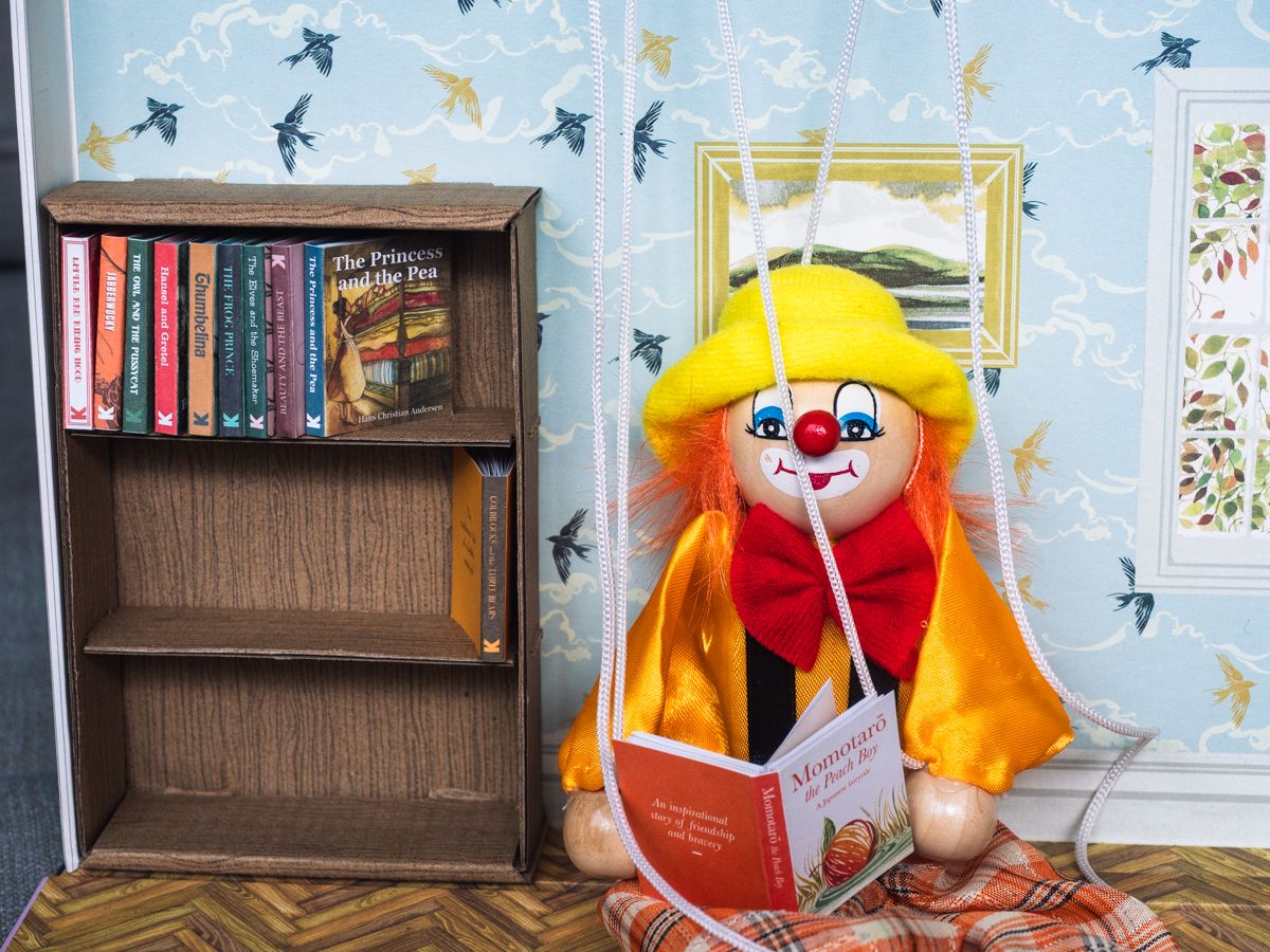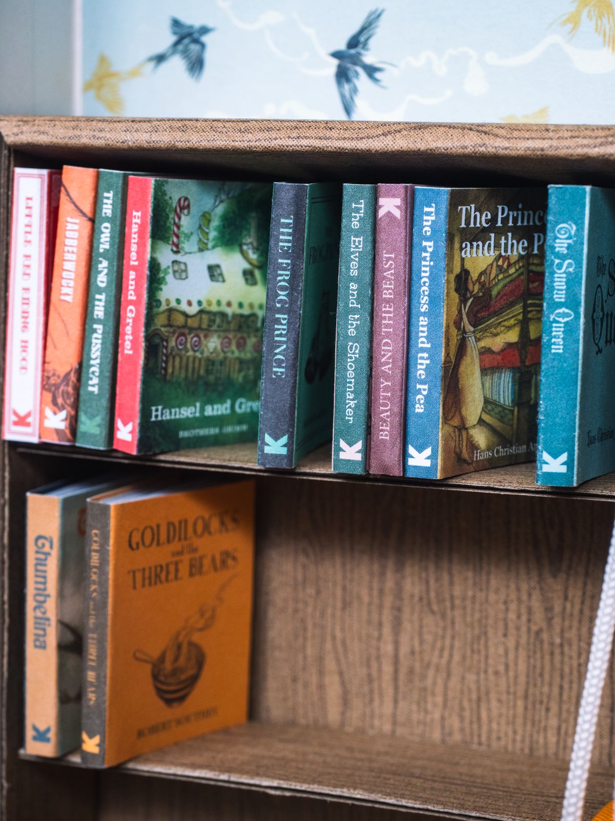 Just as soon as I finished binding one, my child would insist that I read it to him. Once we were done, he would have me read it aloud one more time, for good measure. Then he would place it on the tiny bookshelf included in the kit.