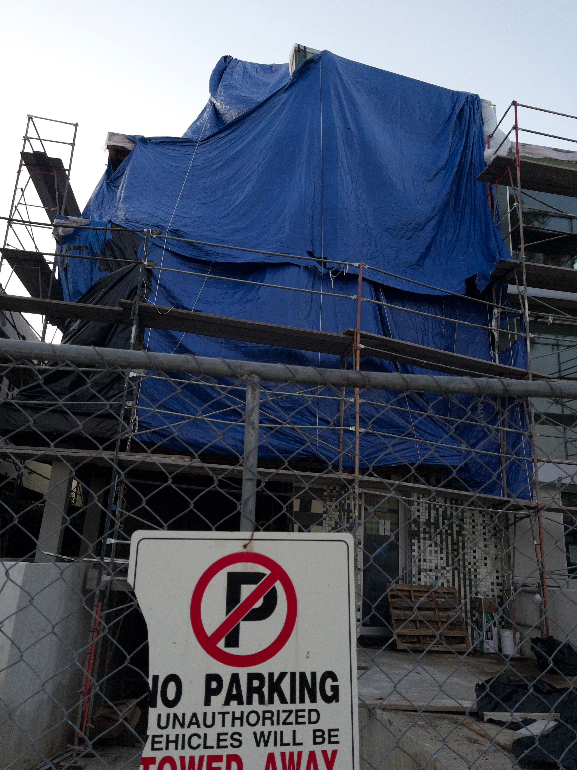 A month ago, a day before the first rains of the season, workers covered the perennially unfinished luxury condos across the with a vast blue tarp. Watching them attach it I groaned, anticipating its loud flapping and chaotic energy. I hated it.